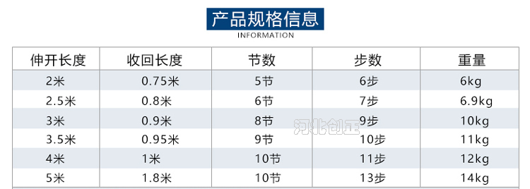 伸態5.0m, 縮態1.20m, 10節, 13步;