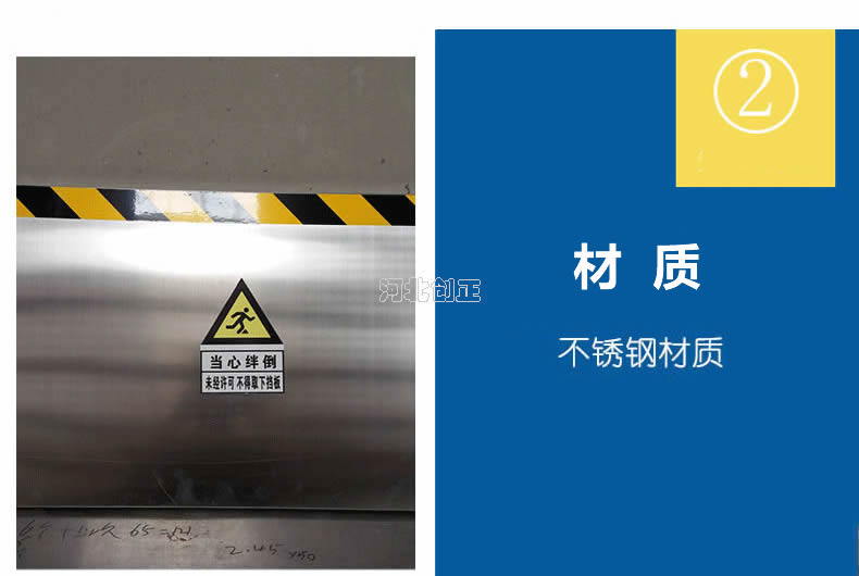 不銹鋼擋鼠板表面經防腐處理。擋板上部貼有黃黑相間的反光條,起到警示作用。