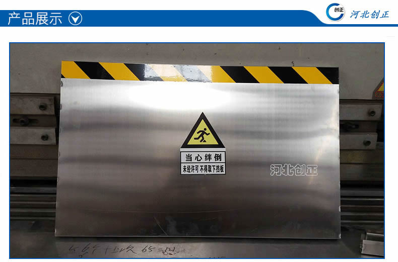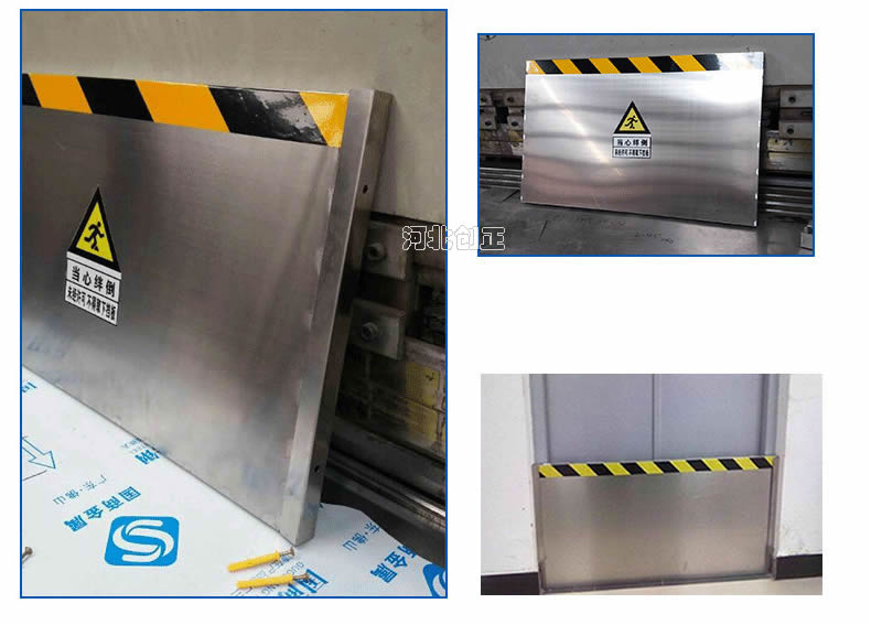 不銹鋼擋鼠板采用不銹鋼板材制做。擋鼠板上部貼黃黑相間反光條,反光條為反光膜加背膠紙制作。